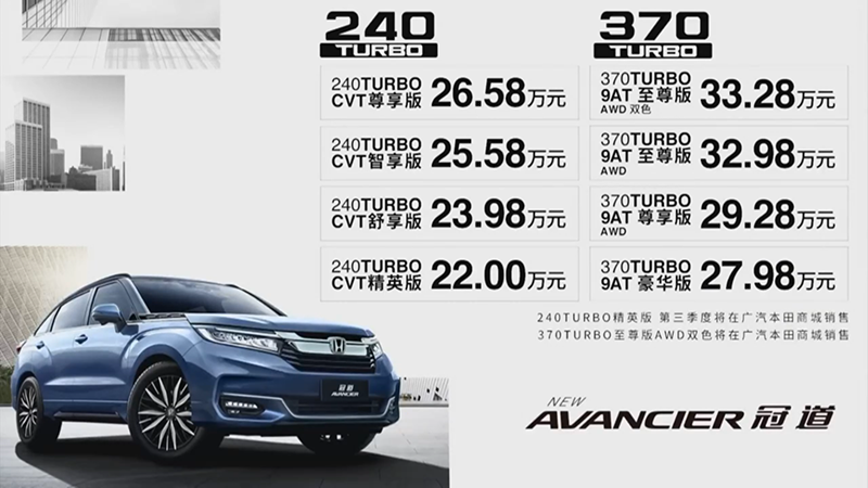 【艾特车@冠道】3月31日,广汽本田开启了一场以“游弋新都市生活GO FOR URBAN LIFE CRUISING”为主题的线上发布会,在本次发布会上新款冠道、2020款缤智以及皓影锐·混动车型悉数亮相。其中新款冠道共推出8款车型,指导售价区间为22.00-33.28万元。2020款缤智共推出7款车型,指导售价区间为12.78-17.68万元。 而皓影锐·混动车型现已全面到店,其共推出有4款车型,指导售价区间为20.98-25.28万元。