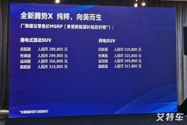 全新腾势X纯电SUV:31.98万-35.78万;