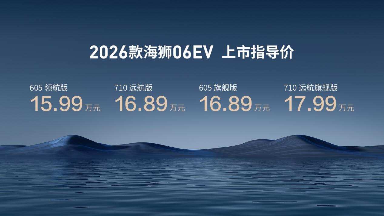 小结:从全新闪充和第二代刀片电池为主的颠覆性技术赋能,到智能、舒享、颜值、驾控、安全的五大维度升级,2026款海狮06EV此次焕新,无疑是一次全方位、高标准的自我超越。它不仅体现了比亚迪在新能源技术领域的硕果,更精准满足了当下消费者的高品质出行需求。我们相信,2026款海狮06EV将继续引领市场风潮,陪伴更多家庭用户开启更加美好的绿色出行新篇章。目前新车已抵达比亚迪海洋网各大门店,欢迎用户到店品鉴试驾。