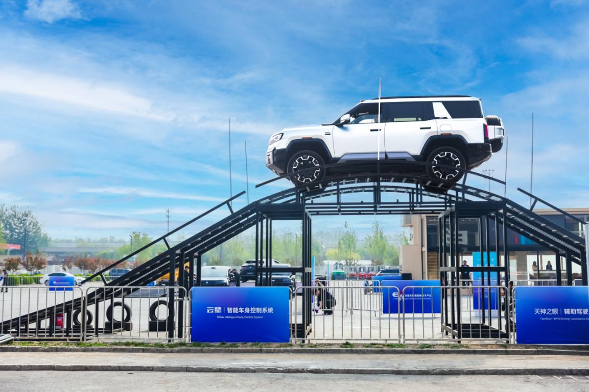 展台技术体验区也是亮点纷呈,天神之眼5.0、第二代刀片电池、闪充技术等核心成果均有亮相,室内设置低温闪充实测、全场景泊车体验,户外打造多品牌极限越野与底盘科技体验区,实景呈现硬核技术底蕴。
